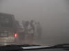 | Nice mammatus clouds under the anvil. | Here comes the haboob. | Van 1 in the outflow as tons of tumbleweeds fly across the road. | The tour guests sample the outflow and get a nice dirt shower! |