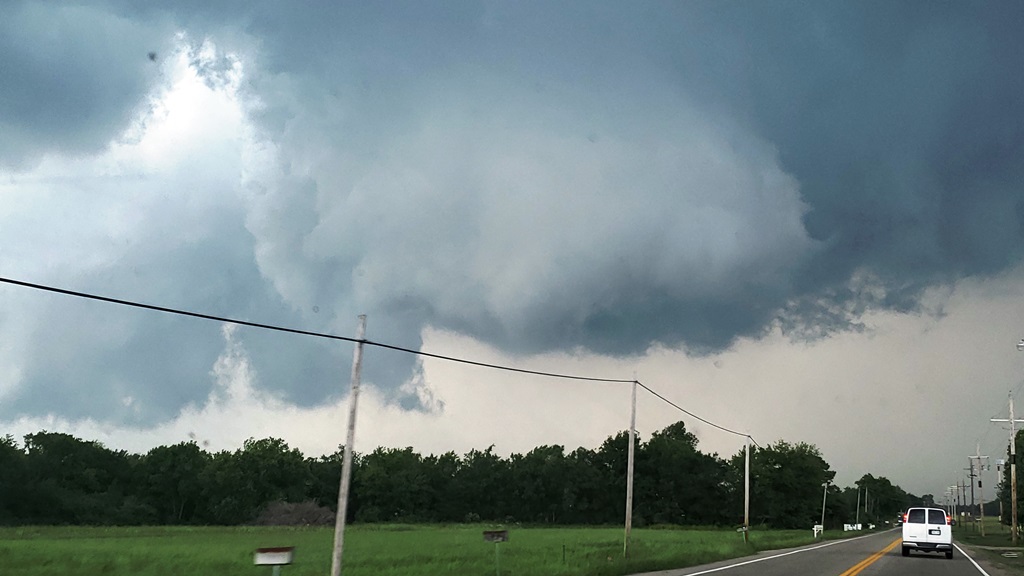 briefly on E0940 Road to get a view, but saw that he wall cloud was